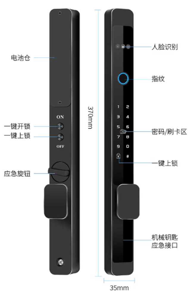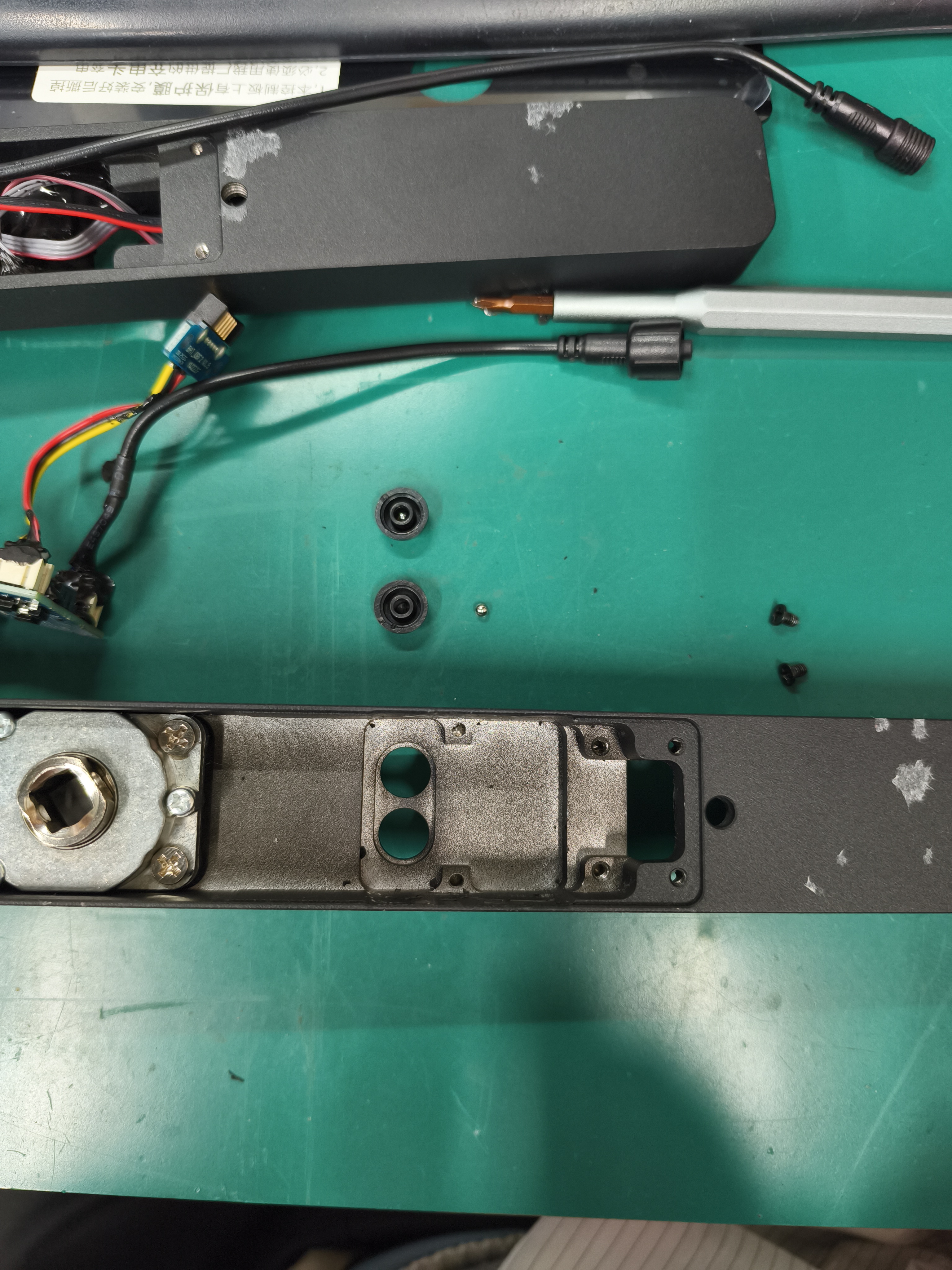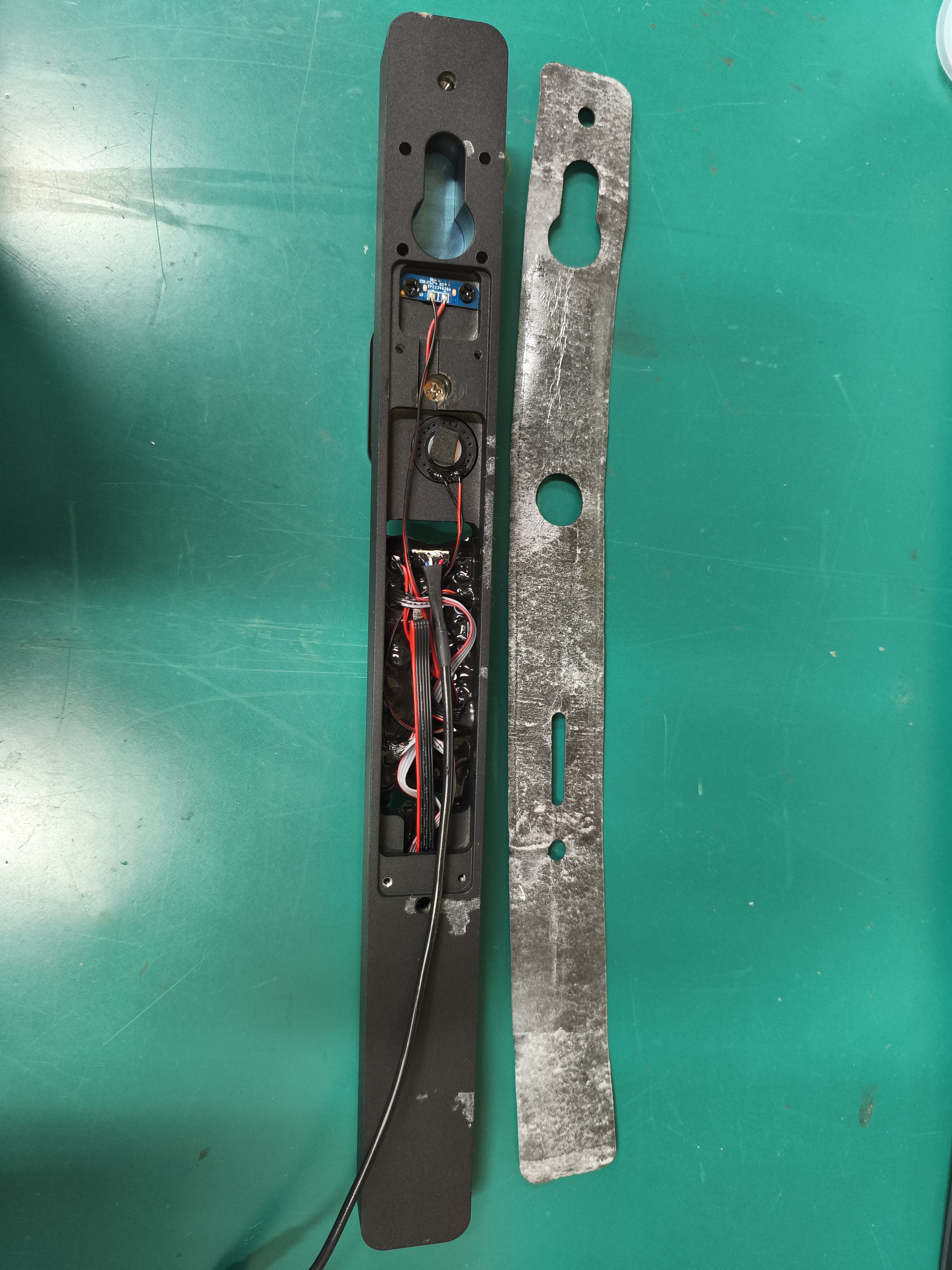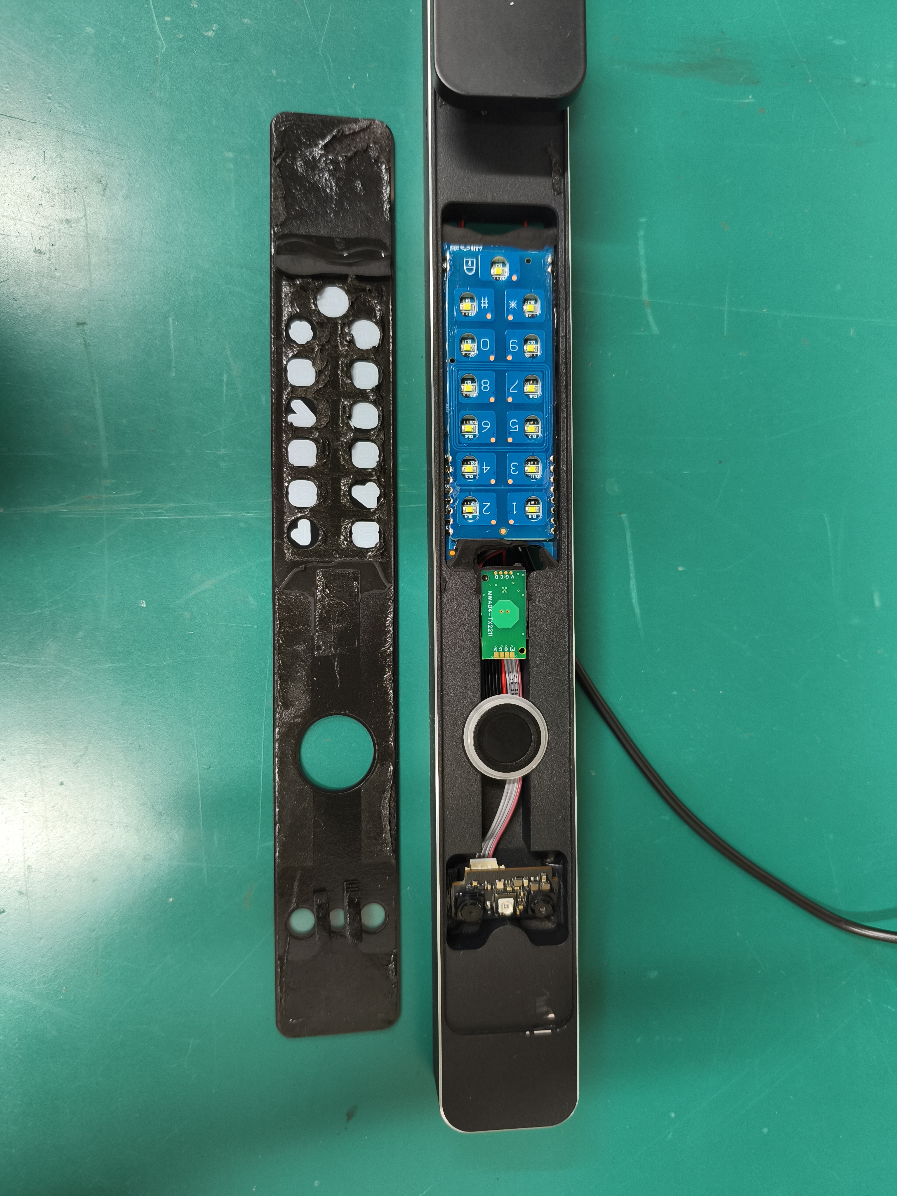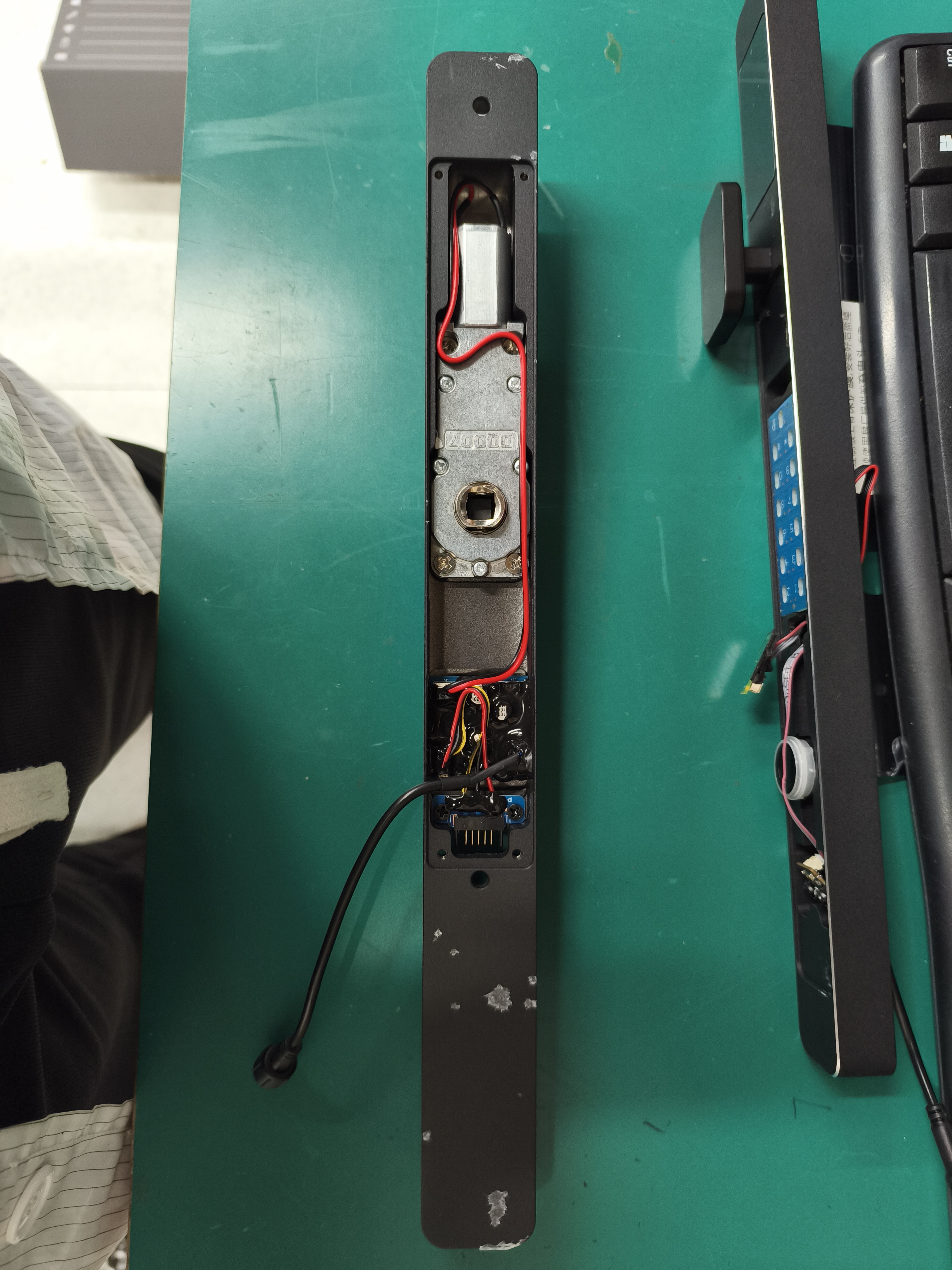 ## 品牌未知  ## 拆包装  ## 锁体安装面粘贴泡棉 内外锁体 防水连接头相连 4芯 外径9mm  ## 电池安装于内部锁体 可拆卸 Type-C口充电  ## 取下锁体泡棉 电路板灌胶处理   ## 取下锁体盖板  ## 人脸识别模块 与供应商推荐的FR602S很相似 这个尺寸我们的锁也能直接用   ## 指纹模块  ## 人体检测雷达  ## 喇叭与腔体  ## 外锁体主控板与触摸板焊在一起 安装没有锁螺丝  ## 主控板扣胶  ## 主控芯片型号:ACMACM32FP001RBT7 https://www.aisinochip.com/Uploads/2024/08/22/%BA%BD%D0%BEACM32FP0X_Datasheet_V1.5.pdf   ## FLASH芯片型号:XT25F128F ## 触摸芯片型号:GTX314  ## 电机减速箱安装尺寸宽度32mm  ## 减速箱 电机表面丝印:160H-10000R-7.4V4A  ## 减速箱内部  ## 内锁体轻触按键 外部帽子塞入钢柱   ## 电池座子 5Pin  ## NFC功能正常 但是主板上没发现NFC芯片 NFC功能由主控MCU与一些分立元器件实现 大概的电路连接:信号输出脚为MCU 39脚与40脚 经过一颗电容耦合到NFC线圈(PCB线圈)NFC线圈的另一端接地 线圈输入端并联了3颗匹配电容 连接到一颗二极管(型号BAW56LT1G)的阴极 二极管的两个阳极 经过数颗电阻电容网络之后 连接至MCU的26脚与28脚 该主控芯片手册并未描述集成了NFC的收发功能 当前的实现方式很别致 减少一颗NFC芯片 具备一定的参考价值