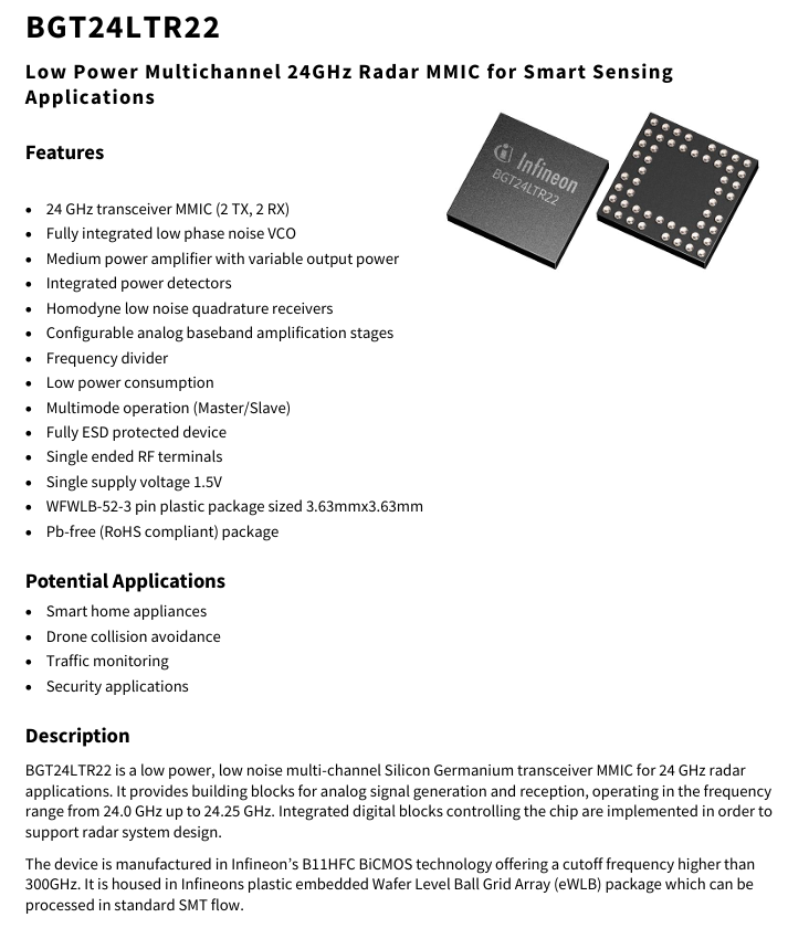 ## 主板   ### 毫米波雷达芯片  - 该芯片采用英飞凌BGT24LTR22毫米波雷达   ### 主控芯片  - 主控采用雅特力科技AT32F435系列超高效能微控制器   ### 电平转换芯片  - 电平转换芯片采用江苏润石的RS0208   ### 电源部分  ### 运放部分  ## 通信板 - 红外热释电探头  - 电源部分